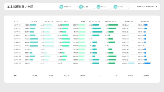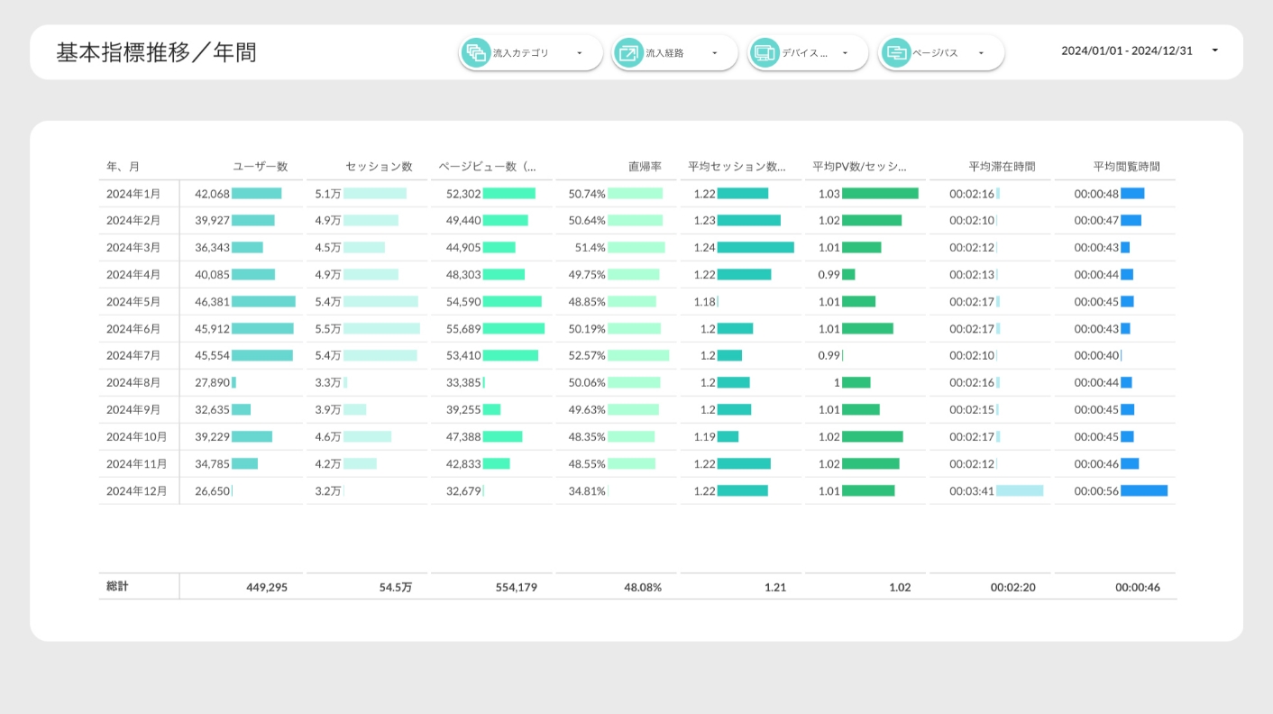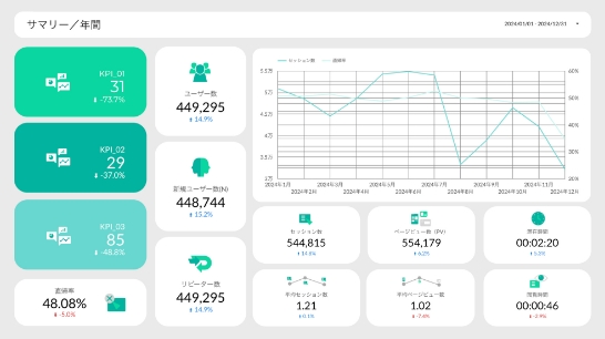 サイトの目的を達成するためのKPIを設定し、日々の進捗を直感的に把握することができます。