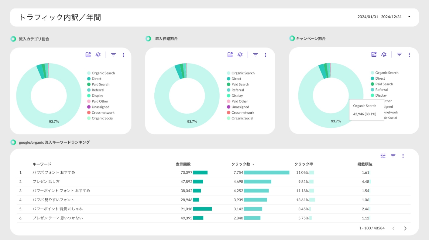 クライアント報告や社内共有にそのまま活用できる、利便性の高い自動生成レポートです。